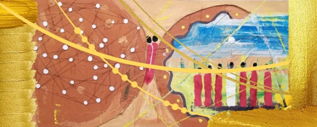 Dans ses séries emblématiques — Fragments vibratoires de l’intérieur, Incandescence Originelle, La Toile du Village, Deux Mondes Connectés — les corps deviennent énergie, les couleurs deviennent symboles, et les textures se font mémoire.