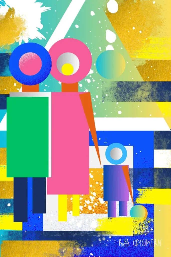 Depuis plus de dix ans, Koffi Odoumtan construit patiemment une œuvre riche et en transformation continue. Autodidacte, il débute en 2010 par le dessin et la peinture avant d’intégrer progressivement les outils numériques à son processus créatif.