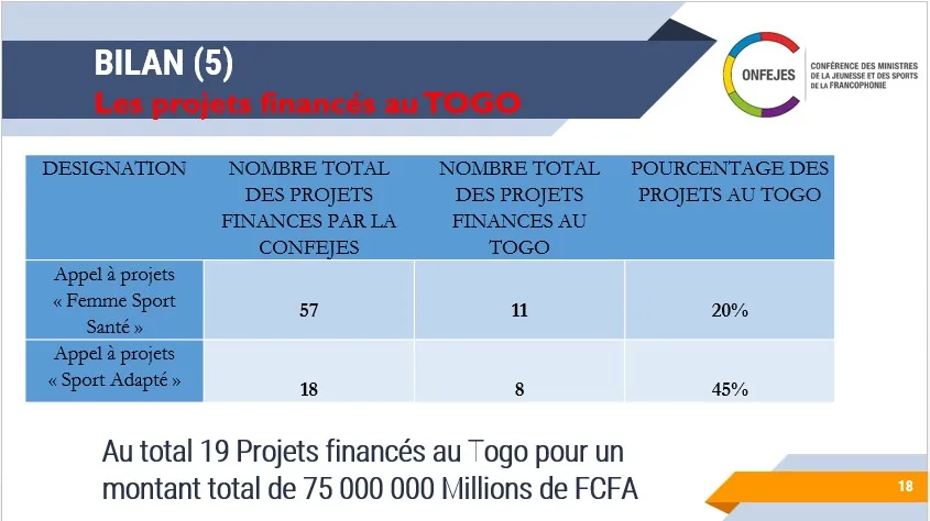 Pour le programme Sport adapté, le Togo a décroché 8 projets sur 18, représentant 45 % des financements.