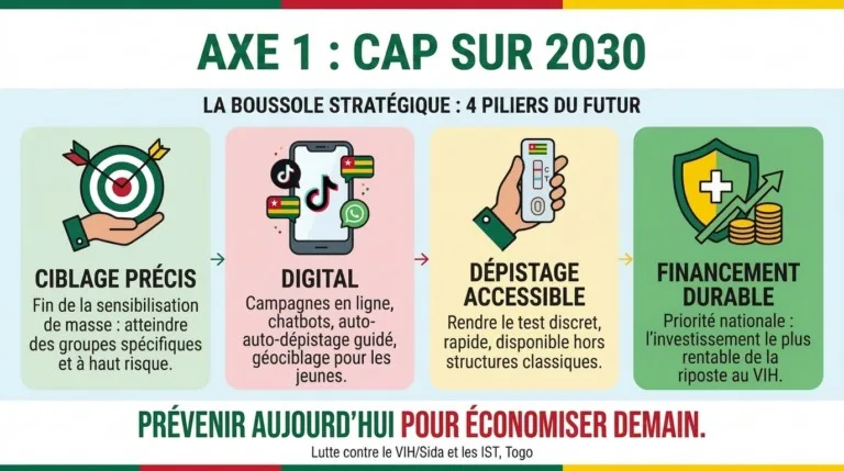 Au fond, les données de 2025 envoient un message sans équivoque : le Togo a les capacités d’agir, mais doit désormais le faire de manière plus ciblée, plus intelligente et à plus grande échelle. L’Axe 1 du PSN 2027-2030 n’est pas qu’une orientation technique, c’est le cœur de la riposte nationale contre les nouvelles infections.